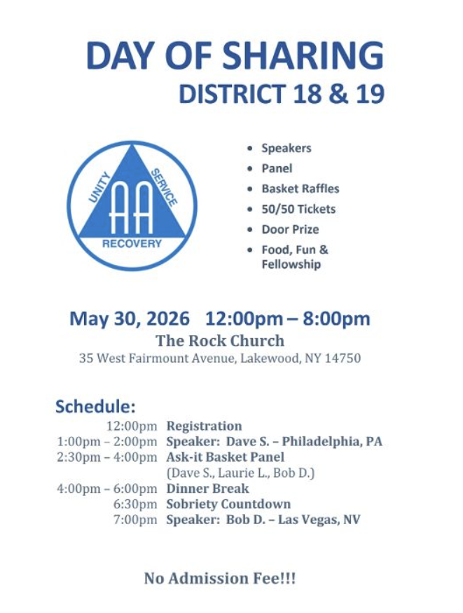 District 18 & 19 Day of Sharing Event Details Date: May 30, 2026 12:00 pm – 7:00 pm Venue: The Rock Church